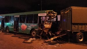 El siniestro vial se registró en la citada intersección, en momentos en que el colectivo circulaba en sentido hacia Itaembé Miní y el camión, que iba sentido contrario, aparentemente dobló directamente hacia la Jauretche sin haber tomado la colectora. No obstante los peritos de la Policía investigan la mecánica del choque.