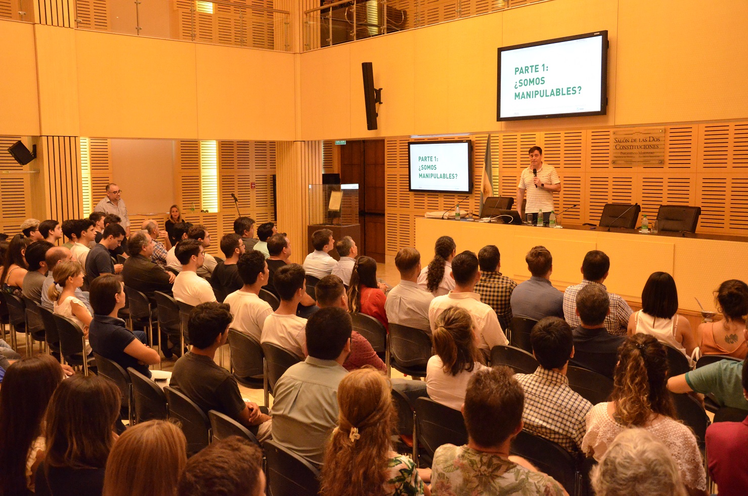 El emprendedor y escritor Santiago Bilinkis presentó su libro “Guía para sobrevivir al presente”, en el Salón de las Dos Constituciones de la Legislatura provincial. Planteó el desafío de utilizar los beneficios de la tecnología sin ser funcionales a los intereses de las empresas que la generan. Llamó a producir más contenidos en vez de consumir tanto, y a utilizar estos recursos para experiencias compartidas en vez de que cada uno quede encerrado en su propia pantalla.