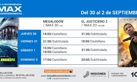 Cartelera del IMAX del Conocimiento del jueves 13 al domingo 16 (+13).