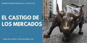 Los bonos públicos que venían cotizando a valores de reestructuración, pasaron a cotizar a precios de cuasi default. Al final de la semana, los bonos cerraron con caídas de entre un 22% (AO20D) y un 50% (DICAD), y el riesgo país se duplicó subiendo de 861 a 1611 puntos básicos. Y contrario a mayo o junio de 2018, el derrumbe cambiario y de los bonos no tuvo impacto en otros países de la región o emergentes.