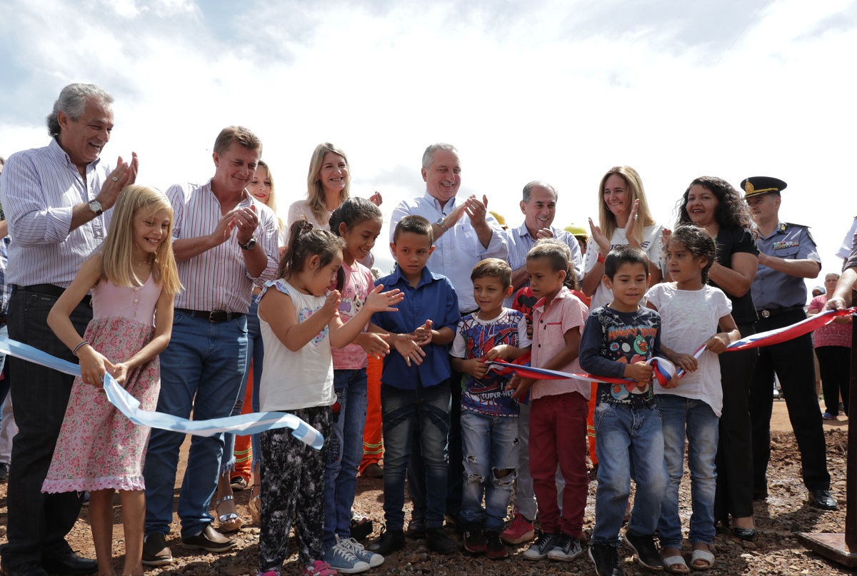 La primera obra a dejar inaugurada fue el viaducto sobre el Yacutinga, donde se procedió al tradicional corte de cinta, acto donde los protagonistas fueron los niños presentes. Allí, acompañaron al Gobernador también la intendente de Almafuerte, Celia Smiak, miembros del Concejo Deliberante y jefes comunales de municipios vecinos. Al finalizar la parte protocolar, el mandatario provincial recorrió el lugar, saludó a cada uno de los presentes y atendió a los medios.