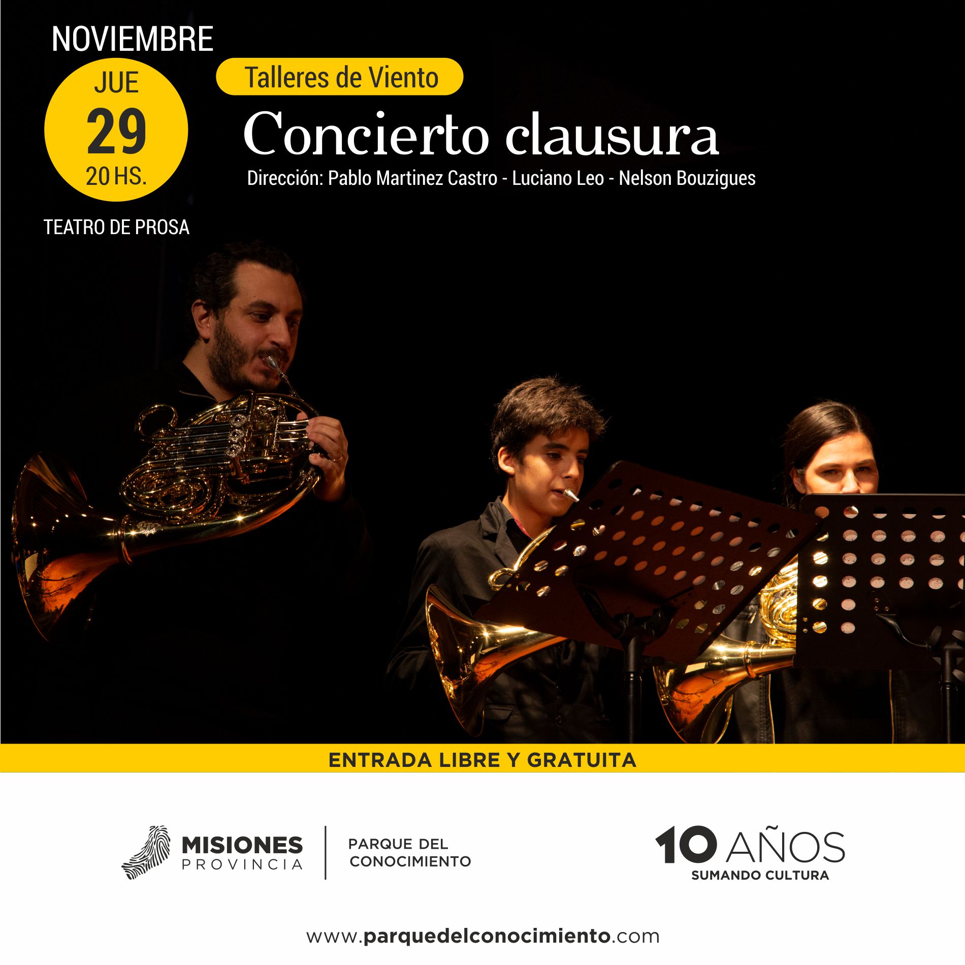 El Parque del Conocimiento invita al Ciclo Sinfónico Juvenil, un concierto de los alumnos de los Talleres Permanentes de Vientos del Parque del Conocimiento ofrecerán un renovado repertorio, bajo la dirección de los Maestros Pablo Martínez Castro, Luciano Leo y Nelson Bouzigues,. La presentación será el jueves 29 en el Teatro de Prosa, con entrada