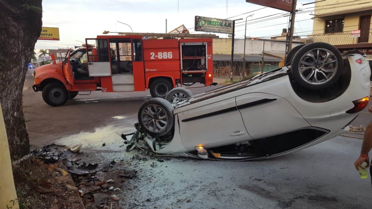 Un joven de 17 años pudo ser rescatado a tiempo de su auto en llamas esta mañana tras un vuelco sobre la avenida Uruguay de Posadas. Salvó su vida gracias a la intervención de un colectivero, que vio el despiste y corrió a ayudar al damnificado.