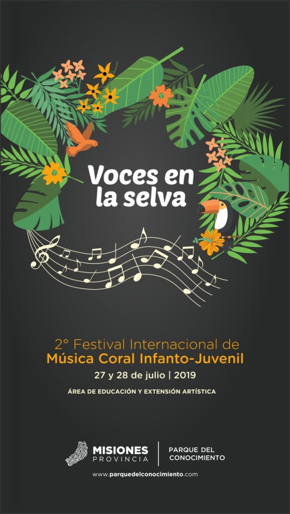 El Festival Internacional de Música Coral Infanto-Juvenil “Voces en la Selva”, coordinado por el Área de Educación y Extensión Artística del Parque del Conocimiento, cuenta con el apoyo de la Schola Cantorum Argentina y tiene como principal objetivo promover el canto coral, la alfabetización musical, vocalidad y polifonía en niños y jóvenes de toda la provincia y la región.