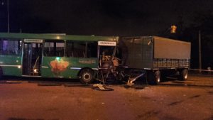 El siniestro vial se registró en la citada intersección, en momentos en que el colectivo circulaba en sentido hacia Itaembé Miní y el camión, que iba sentido contrario, aparentemente dobló directamente hacia la Jauretche sin haber tomado la colectora. No obstante los peritos de la Policía investigan la mecánica del choque.