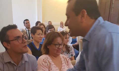Oscar Herrera Ahuad, actual vicegobernador y gobernador electo en Misiones, acompaño al candidato presidencial del Frente de Todos, Alberto Fernández, a una reunión con Miguel Acevedo, de la Unión Industrial Argentina; Héctor Daer y el candidato a diputado nacional Sergio Massa. Fernández apuesta a un acuerdo para recomponer el salario en lo que sería el primer semestre de su gobierno.