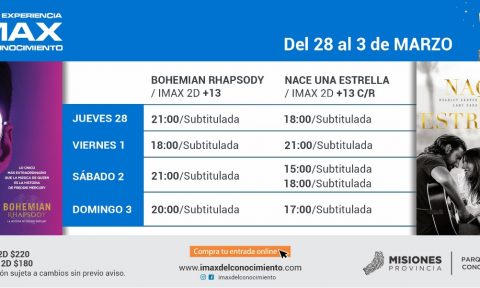 Entradas generales 3D $300. Menores y jubilados $280. Tickets disponibles en www.imaxdelconocimiento.com o en la boletería del cine.
