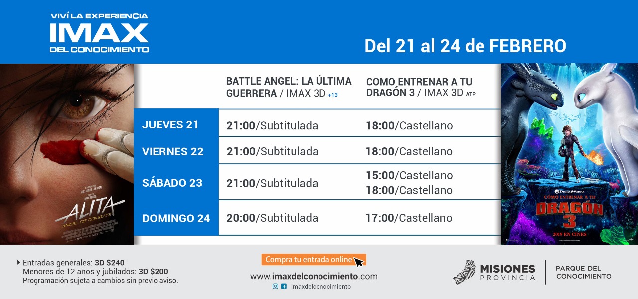 Cartelera del IMAX del Conocimiento del jueves 21 al domingo 24.