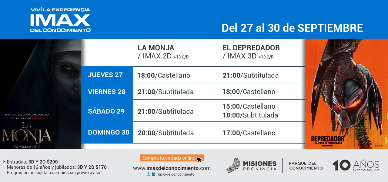 El nuevo combo del IMAX del Conocimiento te propone desde el jueves al domingo dos películas taquilleras en sus respectivos géneros. Dos nuevos clásicos que todavía no lo son: La monja y Depredador.