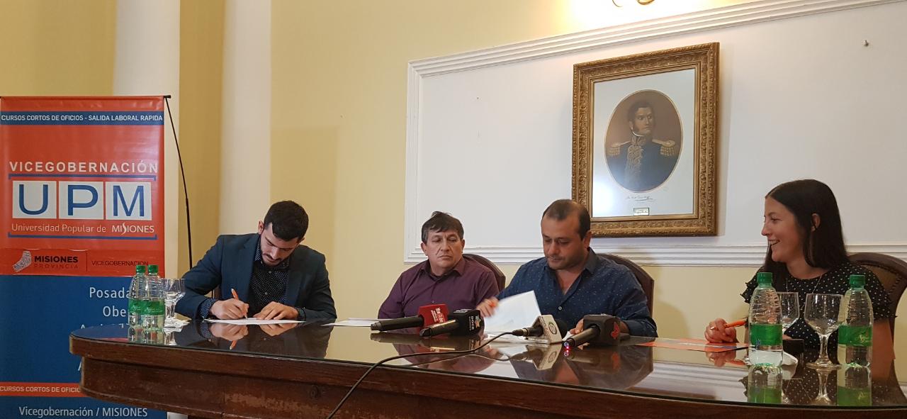 Oscar Herrera Ahuad, estuve presente cuando se concreto la Firma de Convenio entre la Universidad Popular de Misiones, UOCRA, Fundación Construyendo Futuro y Vicegobernación, con la presencia de la Rectora de la UPM Laura Traid, el Sec. Gral. De UOCRA Héctor Vallejos, la rúbrica de la misma se realizó en Sala de Situaciones de Vicegobernación.