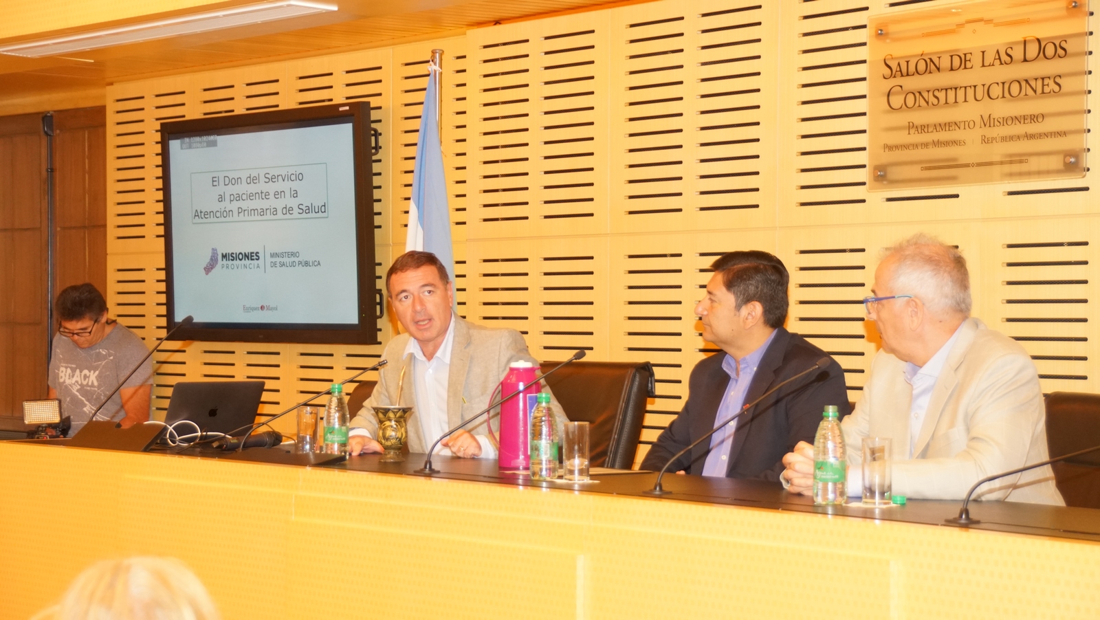 En la Legislatura de Misiones comenzó a desarrollarse, esta mañana, la charla denominada “El don del servicio al paciente en la Atención Primaria de la Salud”. La actividad es organizada por la cartera sanitaria provincial con apoyo del Parlamento Misionero. Calidad de la atención centrada en las personas, y desarrollo de la empatía, comunicación, comprensión y escucha, son temas sobre los que reflexionarán los recursos humanos de Centros de Atención Primaria de la Salud.
