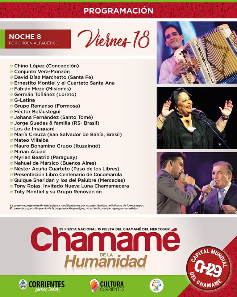 La lluvia no está ayudando y hay varios números que debieron ser suspendidos y otros cancelados, lo que hace que la grilla final de esta noche todavía sea una incógnita, pero como dice la sabiduría popular: “Al mal tiempo, a ponerle buena cara”, y así, Fabián relató su particular simpatía por esta fiesta anual en el Anfiteatro Cocomarola, de la capital correntina y, también mundial del Chamamé.