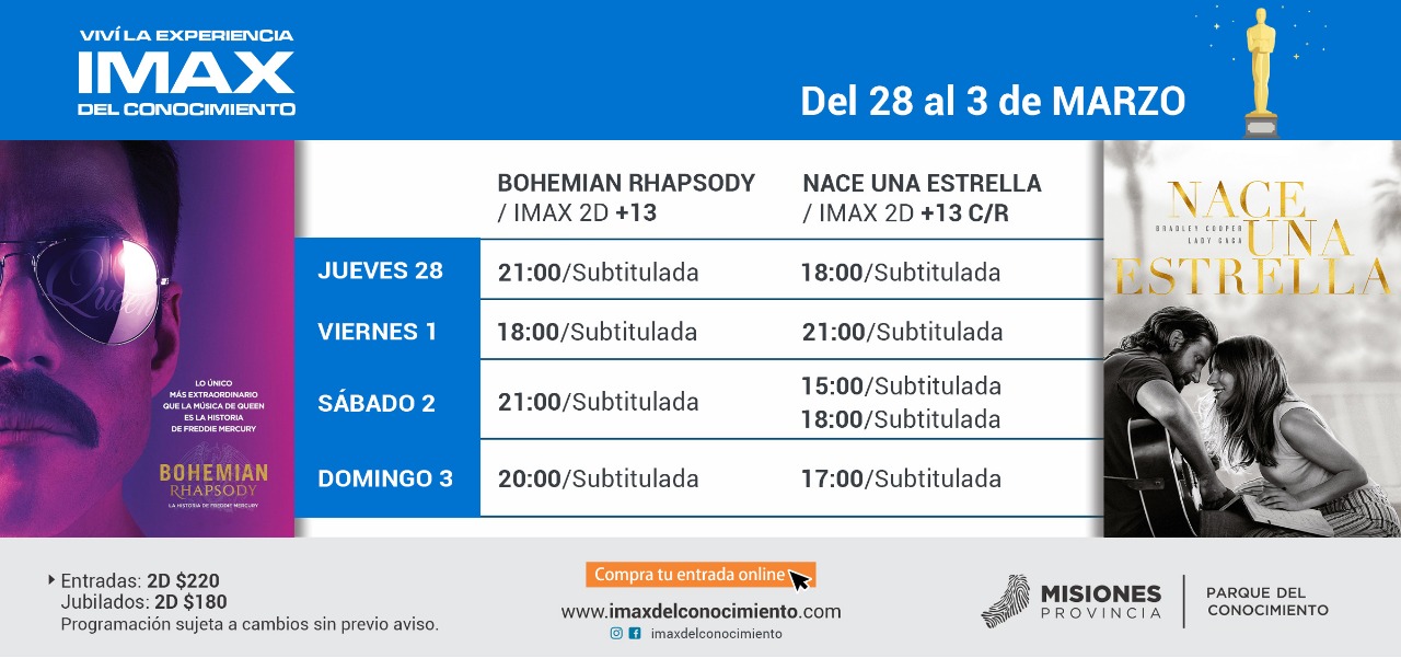 “Rapsodia Bohemia” y “Nace una Estrella”: dos musicales premiados en el IMAX del Conocimiento