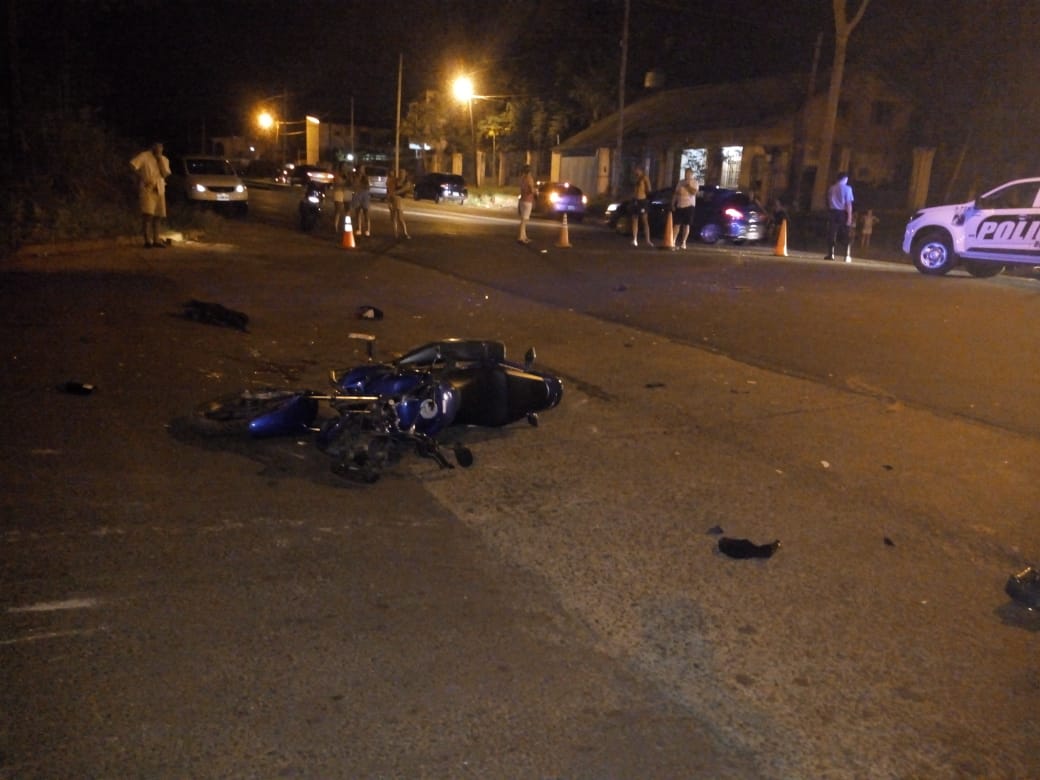 El siniestro vial fue registrado anoche, minutos después de las 21 hs, en la intersección de las avenidas Alem y Aguado. Momentos antes sobre avenida Alem, colisionaron la moto Honda Invicta, ocupada por Ramón De Olivera junto a Claudia D. y el automóvil VW Gol guiado por María O. (38) quien venía acompañada de su hija de 12 años.