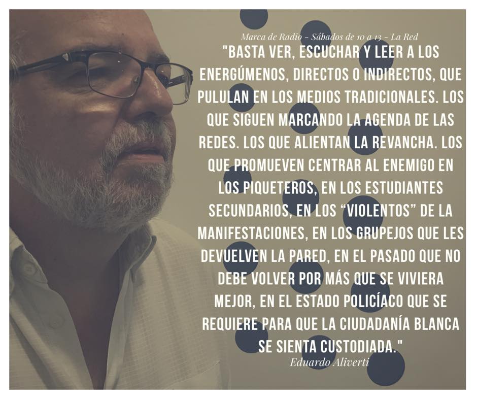 Los que siguen marcando la agenda de las redes. Los que alientan la revancha. Los que promueven centrar al enemigo en los piqueteros, en los estudiantes secundarios, en los “violentos” de la manifestaciones, en los grupejos que les devuelven la pared, en el pasado que no debe volver por más que se viviera mejor, en el Estado policíaco que se requiere para que la ciudadanía blanca se sienta custodiada. Dice García Linera que en la región estamos viviendo un corto invierno porque la vuelta al mando de las fuerzas neoliberales carece de expectativas a mediano y largo plazo.