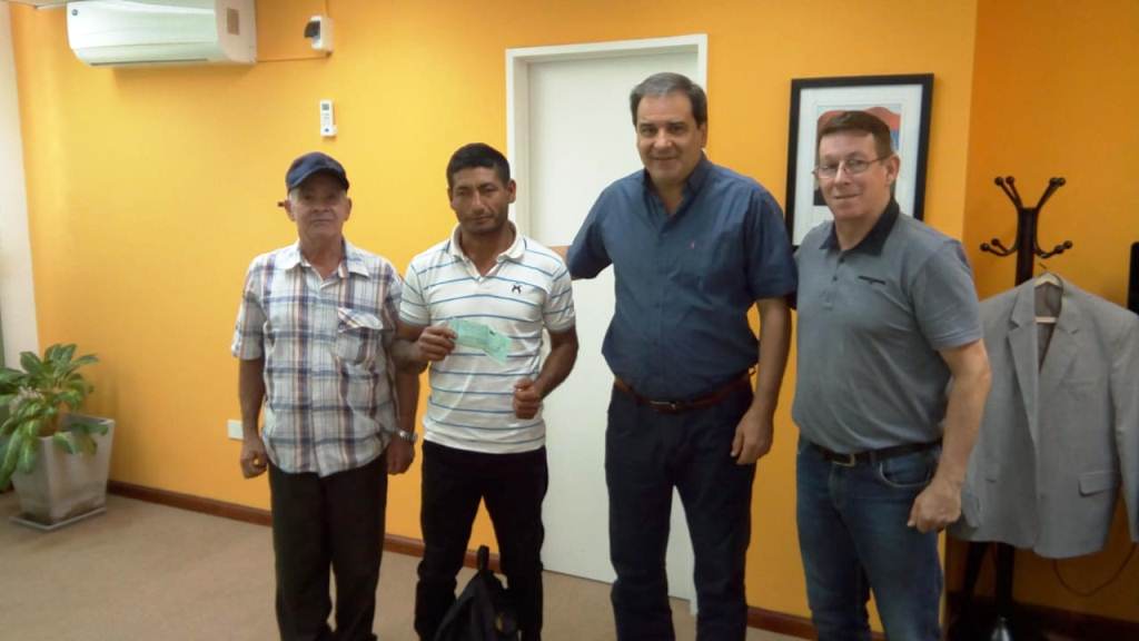 Con el objetivo de reactivar la actividad de pequeños productores que plantan mandioca en Puerto Esperanza, el ministro del Agro y la Producción, ingeniero José Luis Garay entregó asistencia financiera a colonos que buscan mejorar su actividad.